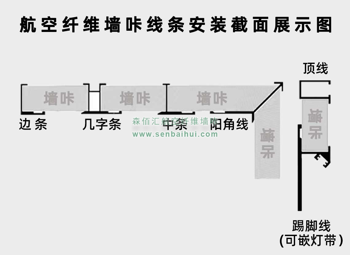 鞍山航空纤维墙咔铝合金带灯中条(钛金氧化)